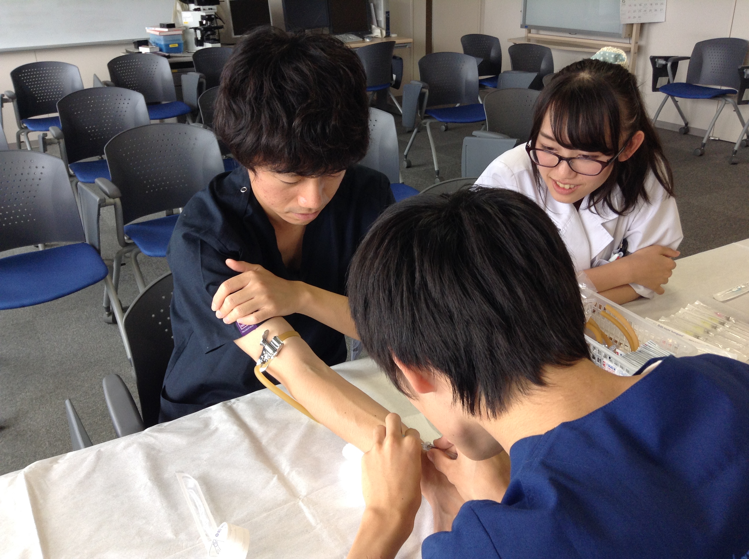浜松医科大学では第三内科として3週間の病棟実習をおこなっています。グループのうち2-3人が主患者として血液内科の患者さんを担当し、残りの学生さんは副患者さんとして血液内科の患者さんを担当しますが、今後、カリキュラムの変更などで、担当患者さんの人数は変更になる可能性があります。